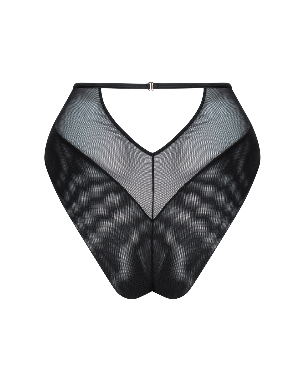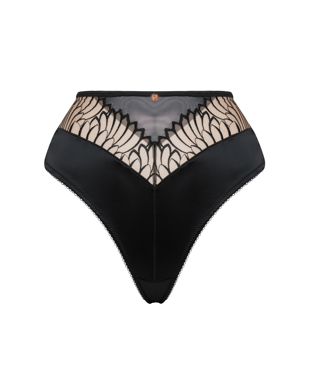 - Not for the virtuous, the delicate Fallen Angel collection includes this flattering high waist brief with a higher leg line and seductive keyhole detail at the rear.