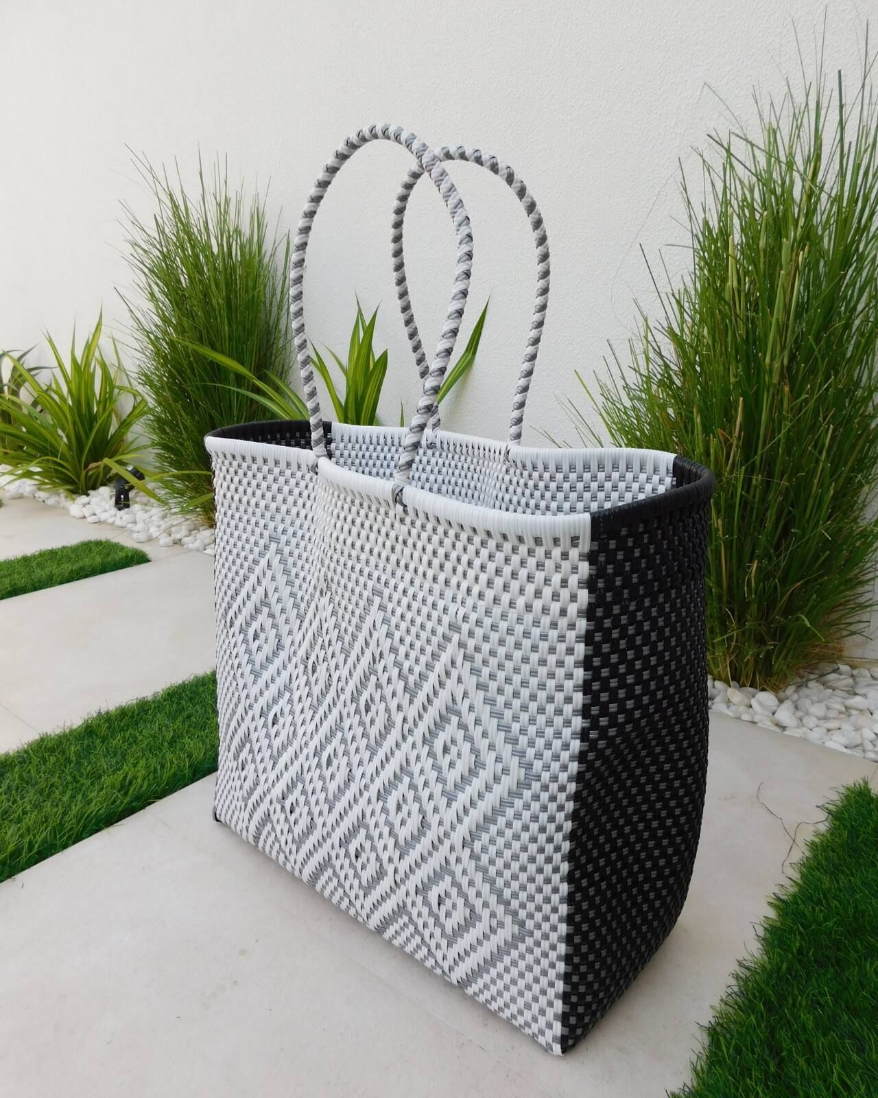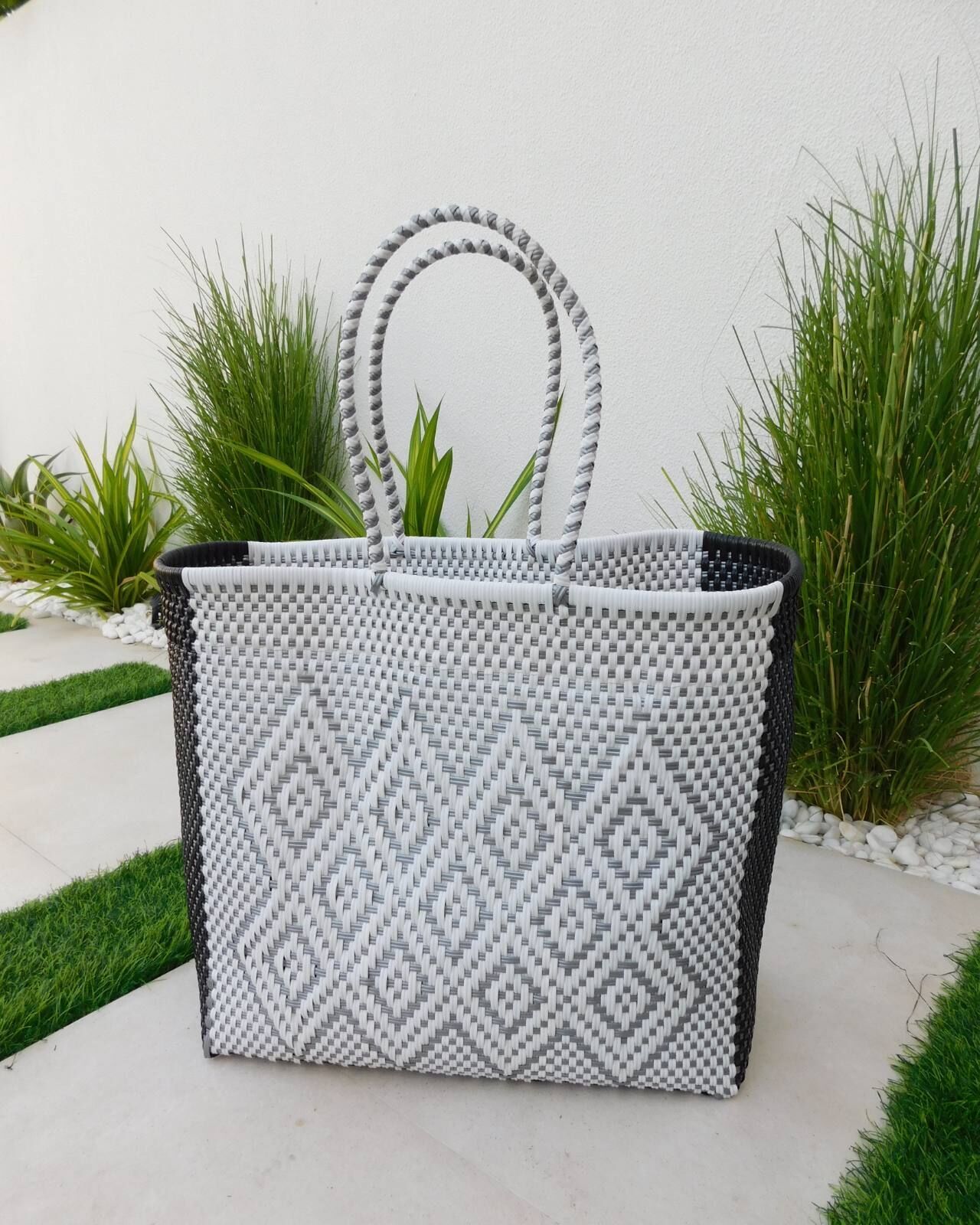 - Distinctive Woven Plastic: Crafted from a durable woven plastic, unique to TKD Lingerie, this bag is built to withstand the elements and the demands of your busy life. It's resilient, lightweight, and effortlessly chic.
