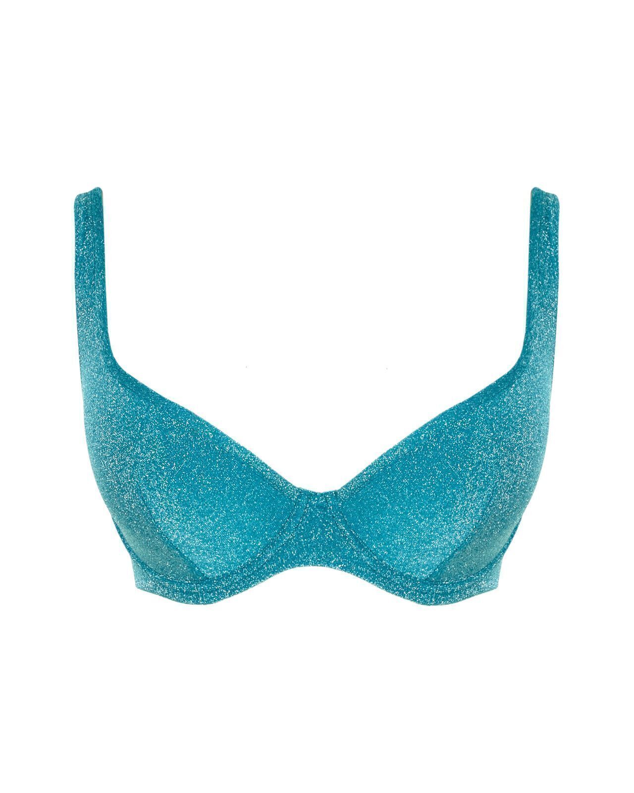 Sparkle Plunge Bikini Top Teal