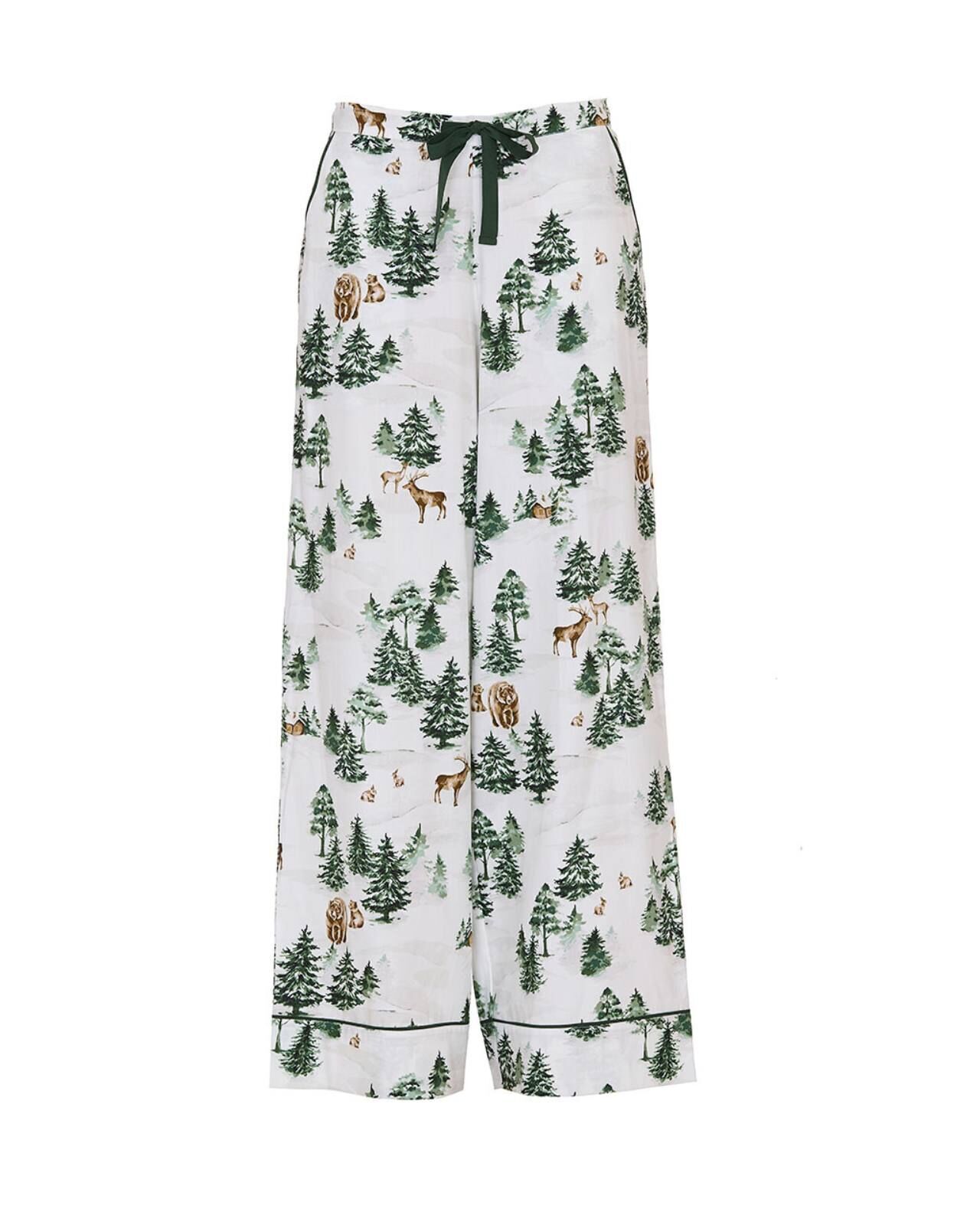 A winter scene in a familiar silhouette, tailored where it counts and stitched with all the comfort the winter months bring, the Fern Alpine Print Wide Leg Pyjama Set is your cosy essential for seasonal lounging.