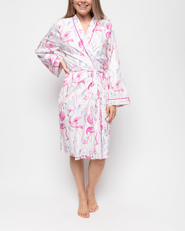 - This fabulous dressing gown is all about the flamingos, featuring a fresh and playful print that is sure to brighten up your day.