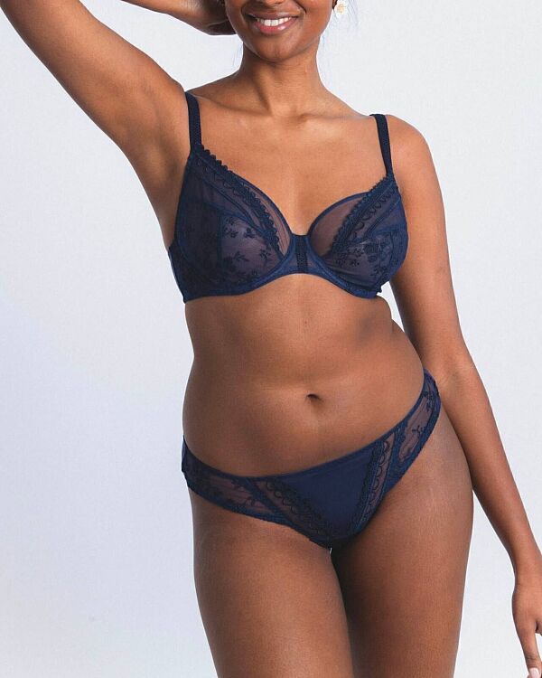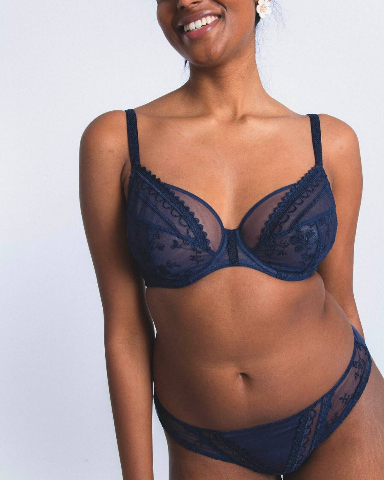 • This balconnet bra pairs delicate floral embroidery with robust underwire support, designed specifically for larger sizes up to an G cup. Its innovative 5-part construction ensures optimal lift and all-day comfort. The plunging neckline and enveloping shape create a flattering silhouette, while the beautiful floral details over satin mesh, lined with soft tulle, blend femininity with essential everyday wearability.