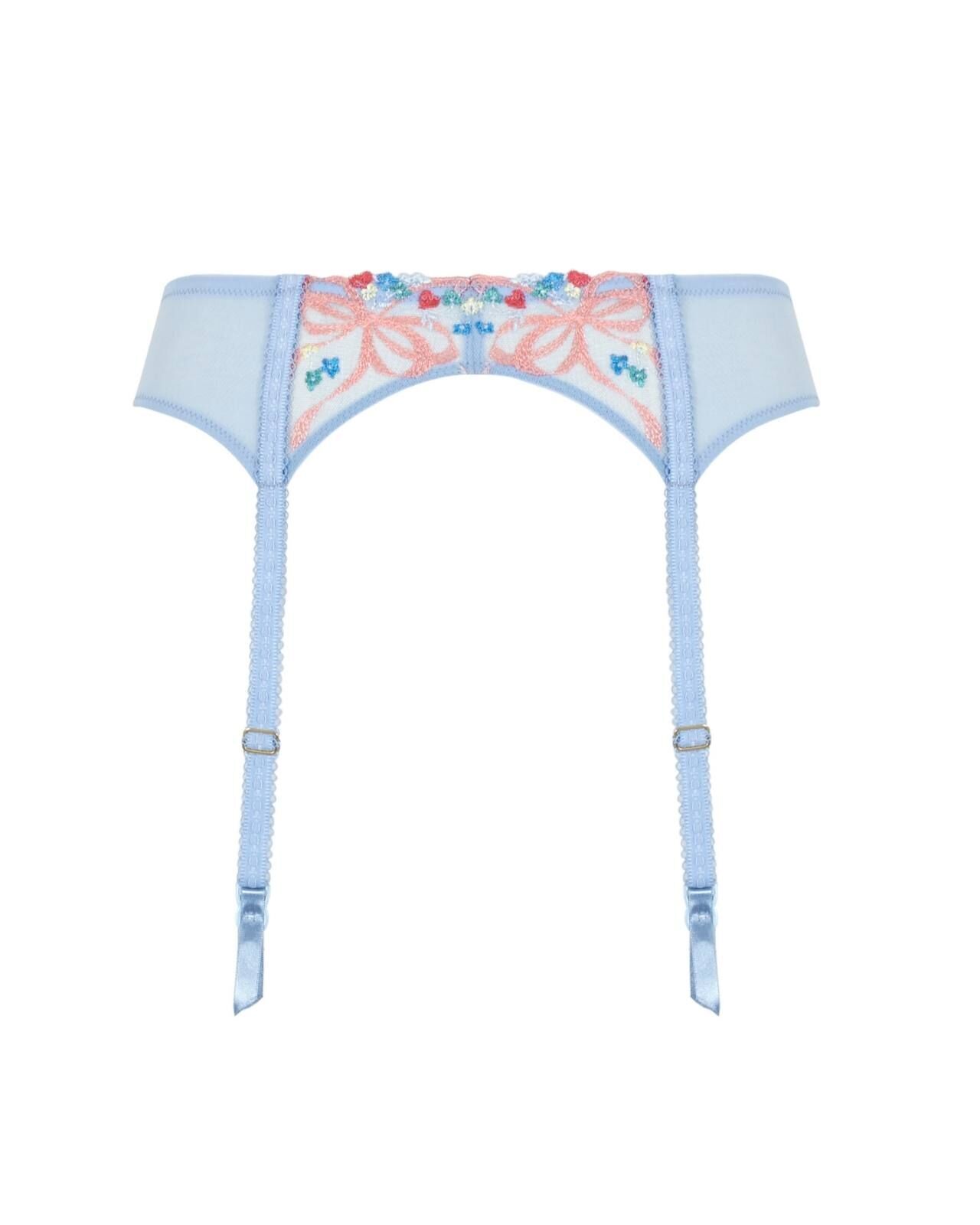 Complete your Ottilie set with this beautifully crafted suspender belt in dusky blue.