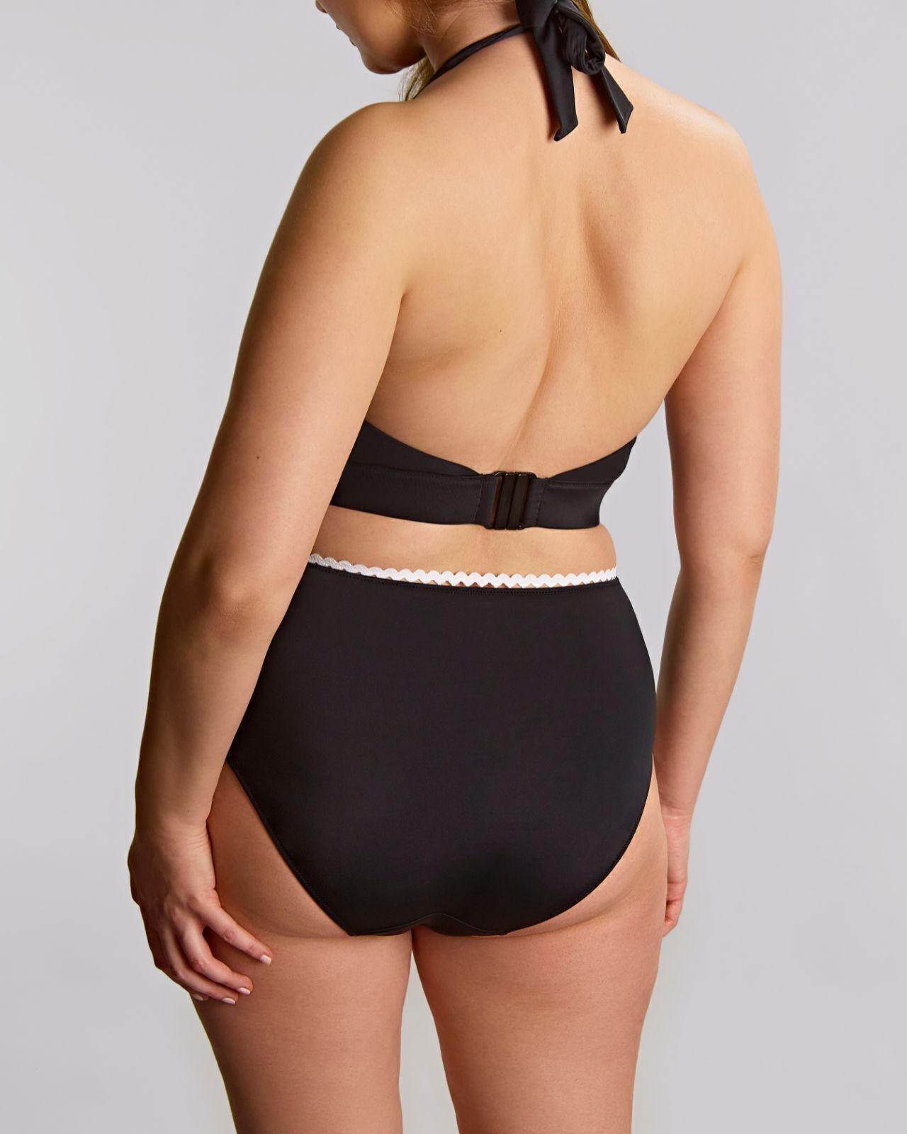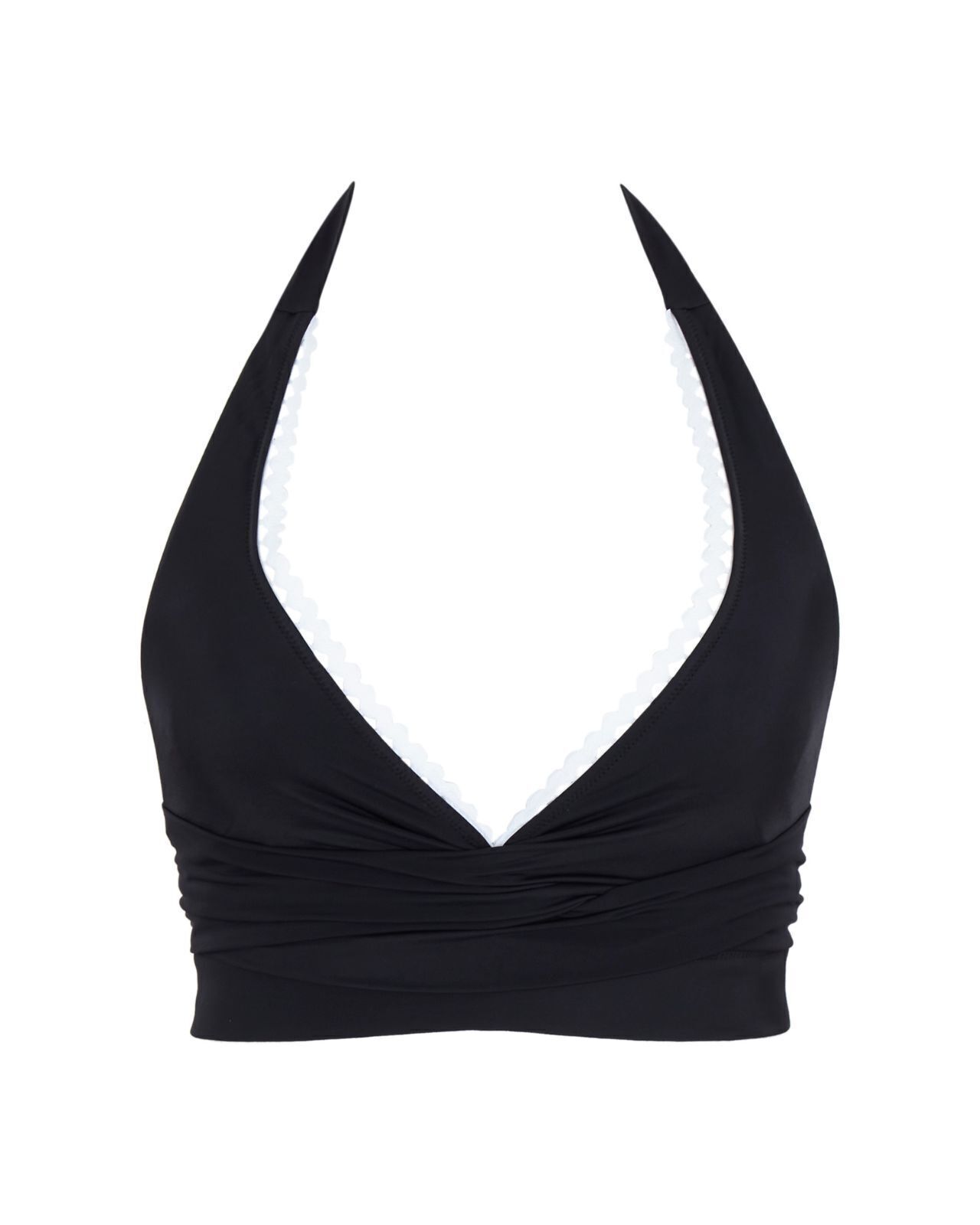 Made from recycled polyamide, our Cloud fabric boasts a naturally soft charmeuse, offering a lightweight and incredibly comfortable feel against your skin. The halter neck styling and playful ric rac trim add a touch of effortless elegance and a vibrant pop of color.